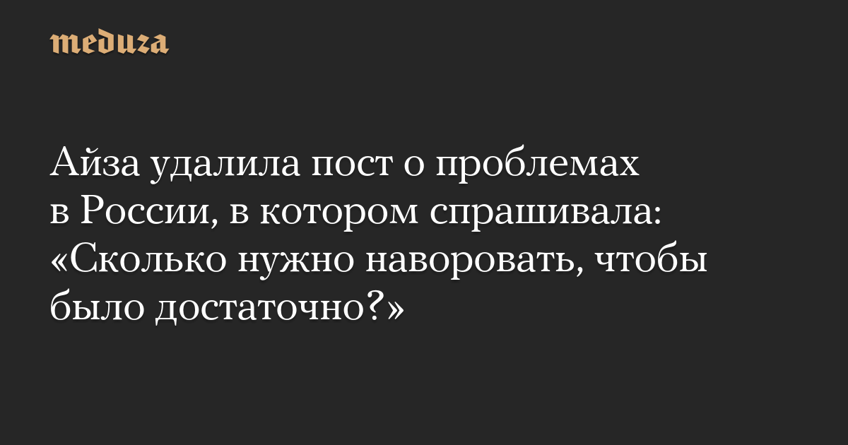 Айза удалила пост о проблемах в России, в котором спрашивала: «Сколько нужно наворовать, чтобы было достаточно?»