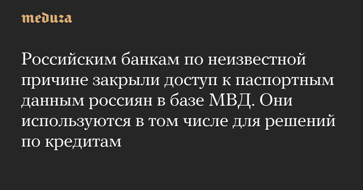 Российским банкам по неизвестной причине закрыли доступ к паспортным данным россиян в базе МВД. Они используются в том числе для решений по кредитам