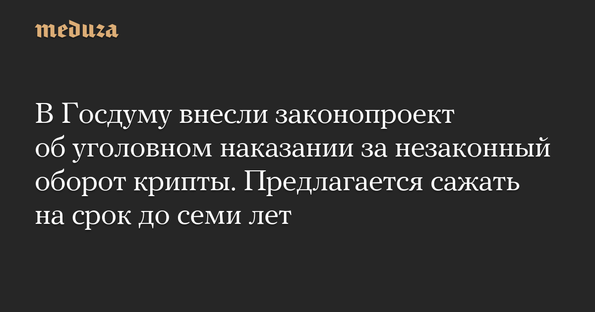 В Госдуму внесли законопроект об уголовном наказании за незаконный оборот крипты. Предлагается сажать на срок до семи лет