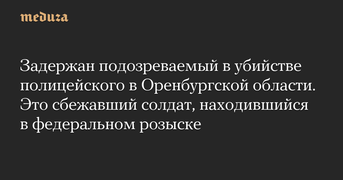 Задержан подозреваемый в убийстве полицейского в Оренбургской области. Это сбежавший солдат, находившийся в федеральном розыске