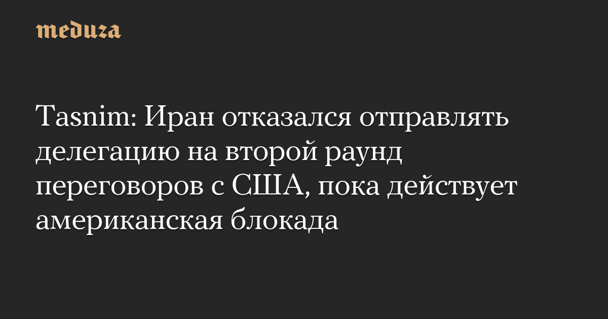Tasnim: Иран отказался отправлять делегацию на второй раунд переговоров с США, пока действует американская блокада