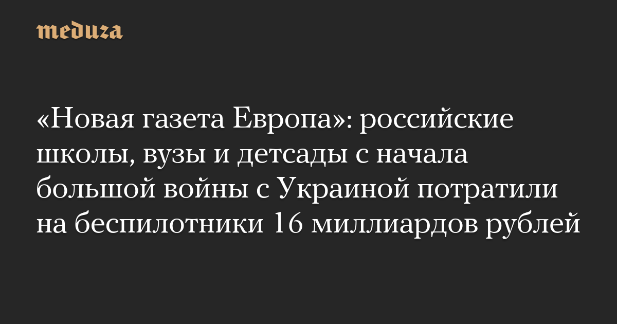 «Новая газета Европа»: российские школы, вузы и детсады с начала большой войны с Украиной потратили на беспилотники 16 миллиардов рублей