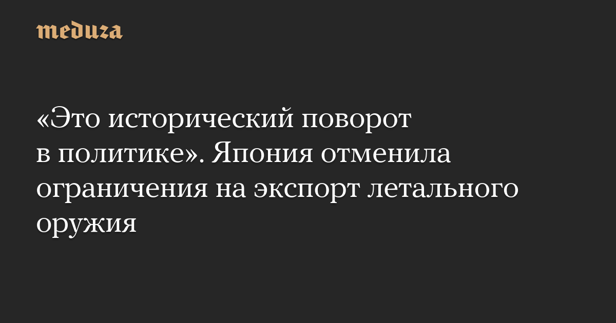 «Это исторический поворот в политике». Япония отменила ограничения на экспорт летального оружия