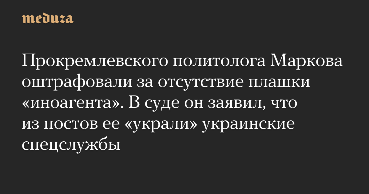 Прокремлевского политолога Маркова оштрафовали за отсутствие плашки «иноагента». В суде он заявил, что из постов ее «украли» украинские спецслужбы