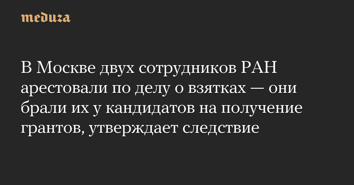 В Москве двух сотрудников РАН арестовали по делу о взятках — они брали их у кандидатов на получение грантов, утверждает следствие