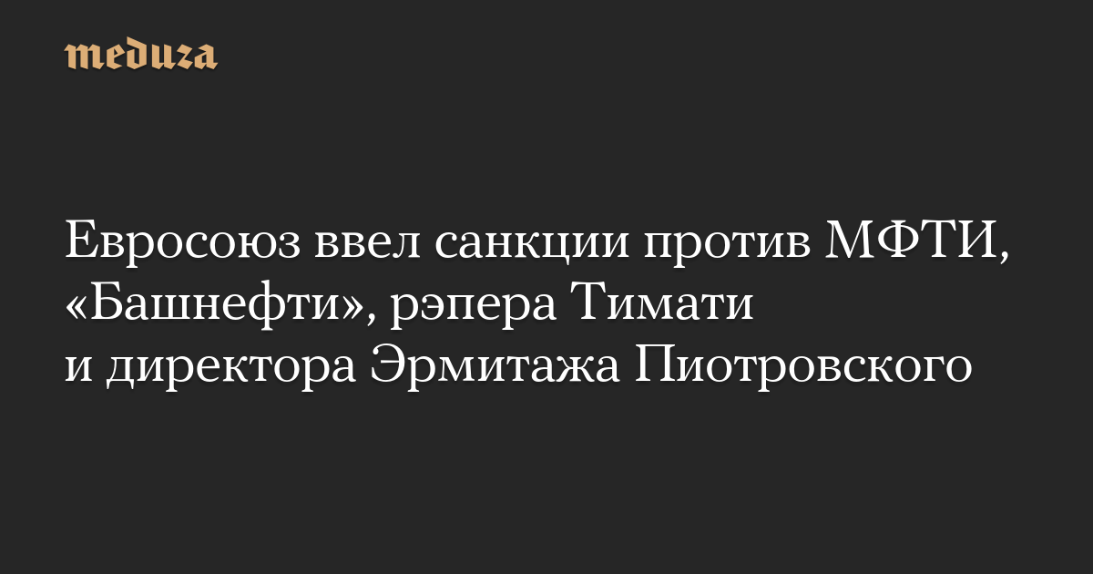 Евросоюз ввел санкции против МФТИ, «Башнефти», рэпера Тимати и директора Эрмитажа Пиотровского