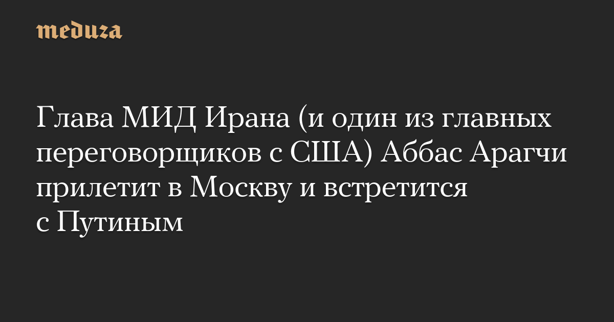 Глава МИД Ирана (и один из главных переговорщиков с США) Аббас Арагчи прилетит в Москву и встретится с Путиным