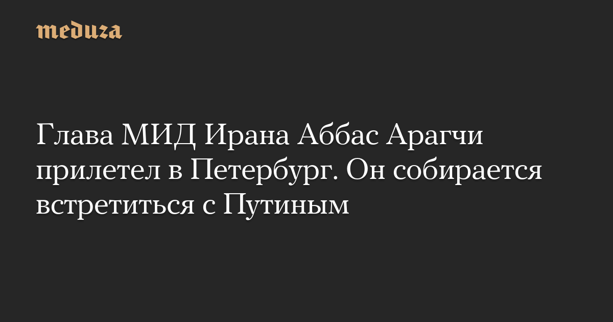 Глава МИД Ирана Аббас Арагчи прилетел в Петербург. Он собирается встретиться с Путиным