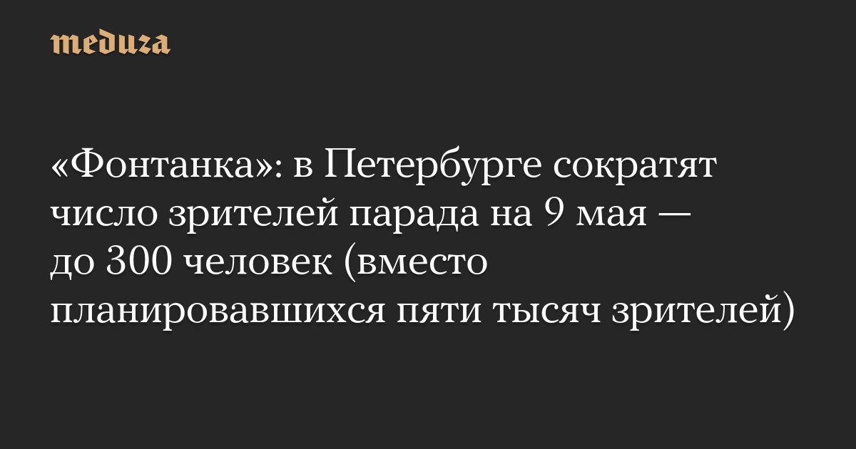 «Фонтанка»: в Петербурге сократят число зрителей парада на 9 мая — до 300 человек (вместо планировавшихся пяти тысяч зрителей)