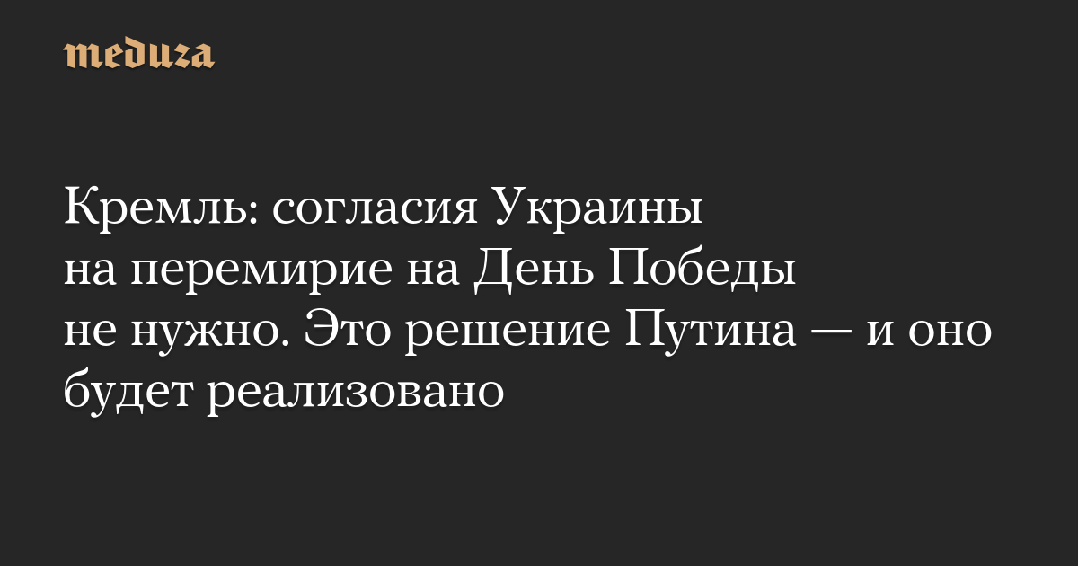 Кремль: согласия Украины на перемирие на День Победы не нужно. Это решение Путина — и оно будет реализовано