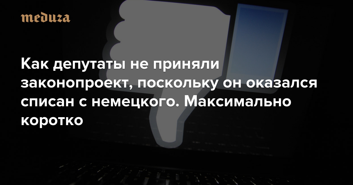 Как депутаты не приняли законопроект, поскольку он оказался списан с немецкого. Максимально коротко