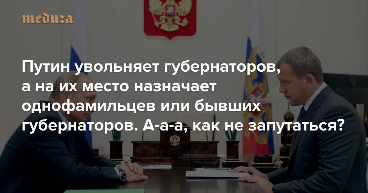 Этот материал был опубликован 26 сентября и обновлен 2 октября. Потому что Владимир Путин продолжает менять губернаторов на однофамильцев других губернаторов.