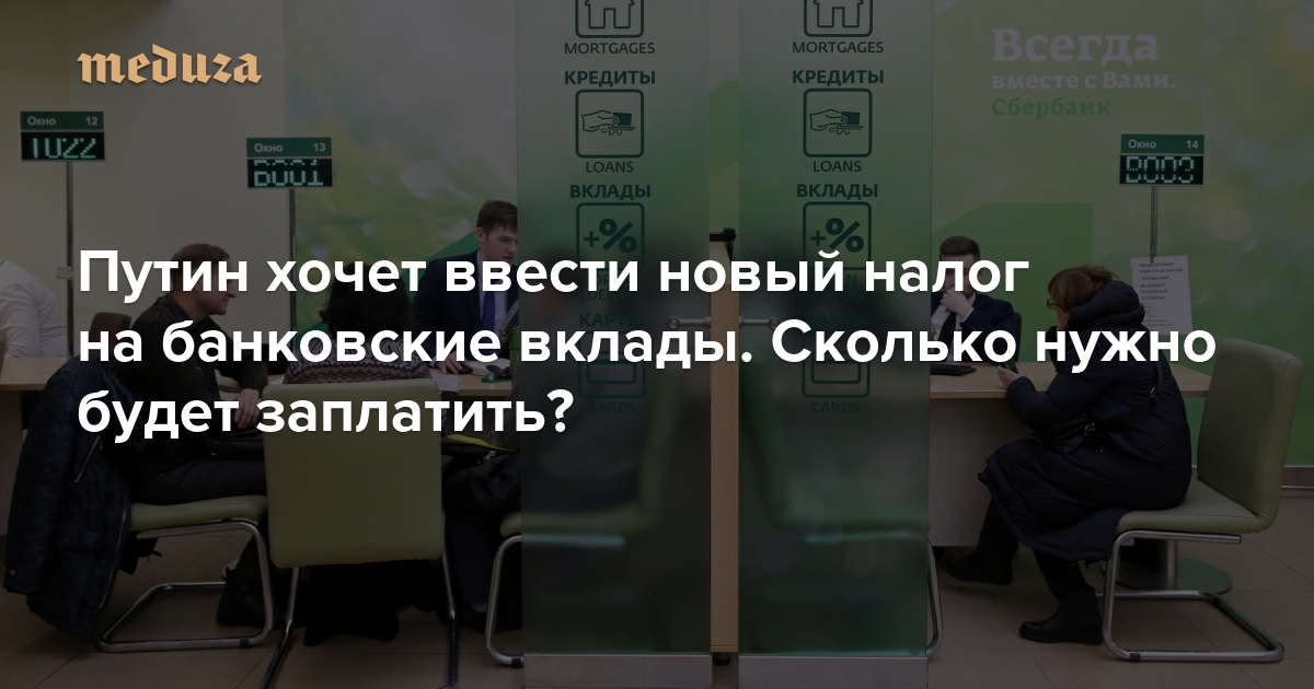 Что это за сообщение и почему оно повсюду на «Медузе»?Владимир Путин в обращении к гражданам объявил о намерении ввести новый налог в 13% на банковские вклады и ценные бумаги на сумму свыше миллиона рублей. Взимать его будут не с самой этой суммы, а с полученного дохода, то есть с дивидендов или процента по вкладам. Сейчас средняя ставка по рублевым вкладам составляет около 5%. После введения налога она уменьшится до 4,35 (5×0,13 = 0,65). Таким образом, с вклада в 1 миллион (при ставке 5%) нужно будет отдать государству примерно 6,5 тысячи рублей (а доход составит 43 тысячи).
