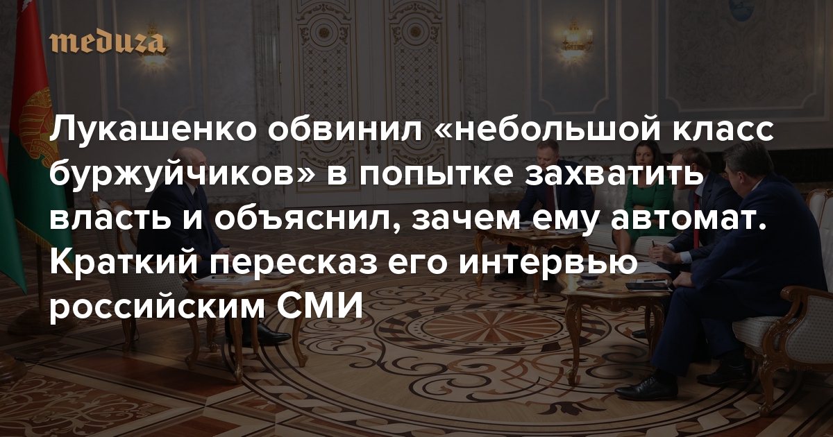 Лукашенко обвинил «небольшой класс буржуйчиков» в попытке захватить власть и объяснил, зачем ему автомат Краткий пересказ его интервью российским СМИ
