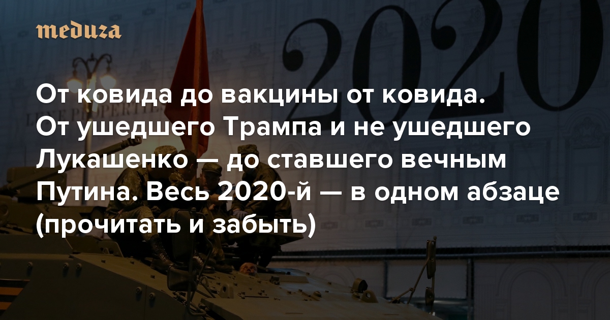 От ковида до вакцины от ковида. От ушедшего Трампа и не ушедшего Лукашенко — до ставшего вечным Путина Весь 2020-й — в одном абзаце (прочитать и забыть)