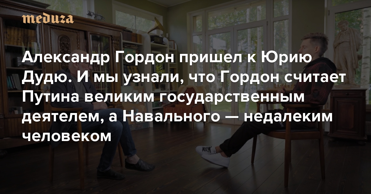 Александр Гордон пришел к Юрию Дудю. И мы узнали, что Гордон считает Путина великим государственным деятелем, а Навального — недалеким человеком Кратчайший пересказ интервью