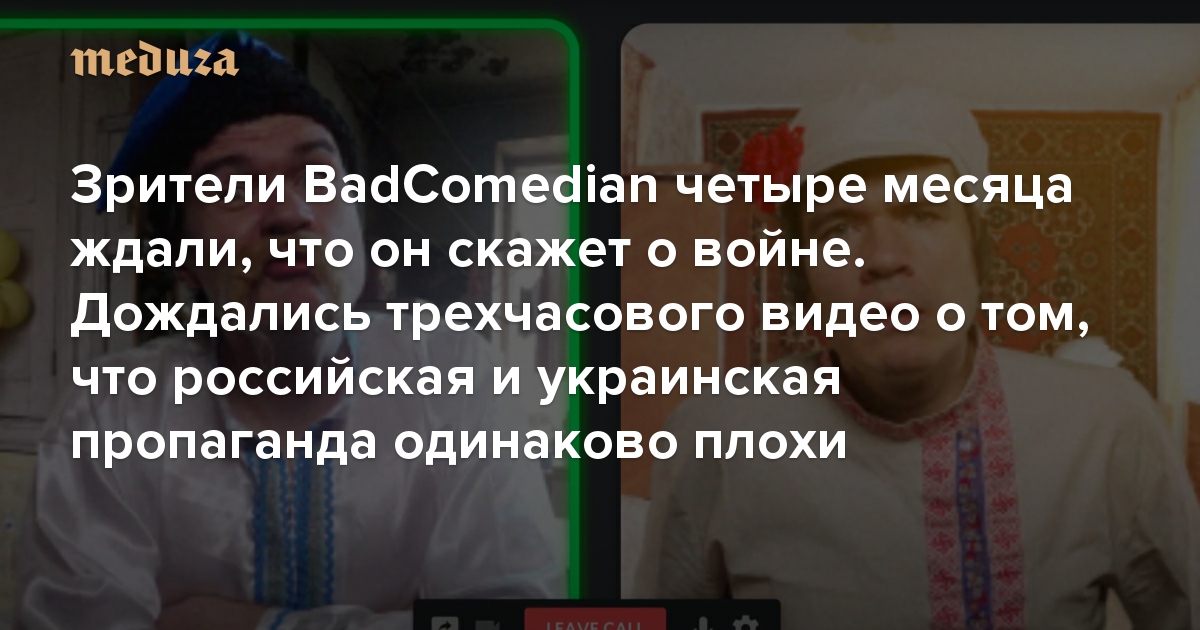 Зрители BadComedian четыре месяца ждали, что он скажет о войне. Дождались трехчасового видео о том, что российская и украинская пропаганда одинаково плохи Краткий пересказ
