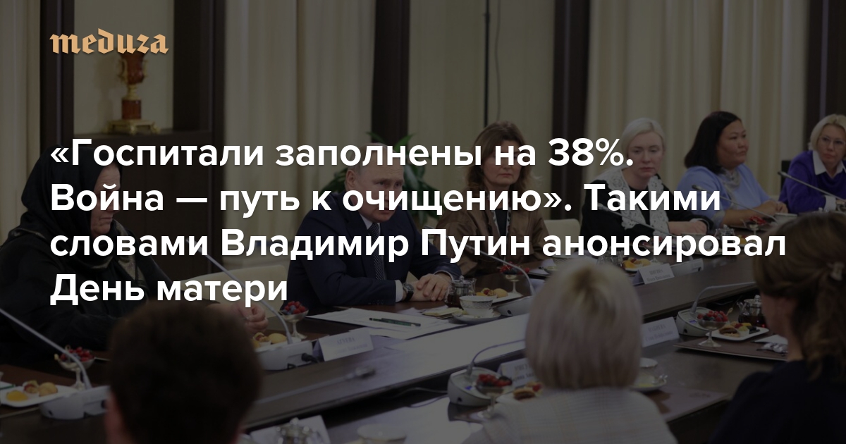 «Госпитали заполнены на 38%. Война — путь к очищению» Такими словами Владимир Путин анонсировал День матери