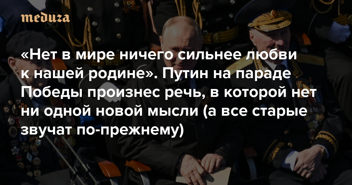 «Нет в мире ничего сильнее любви к нашей родине» Путин на параде Победы произнес речь, в которой нет ни одной новой мысли (а все старые звучат по-прежнему). Краткий пересказ