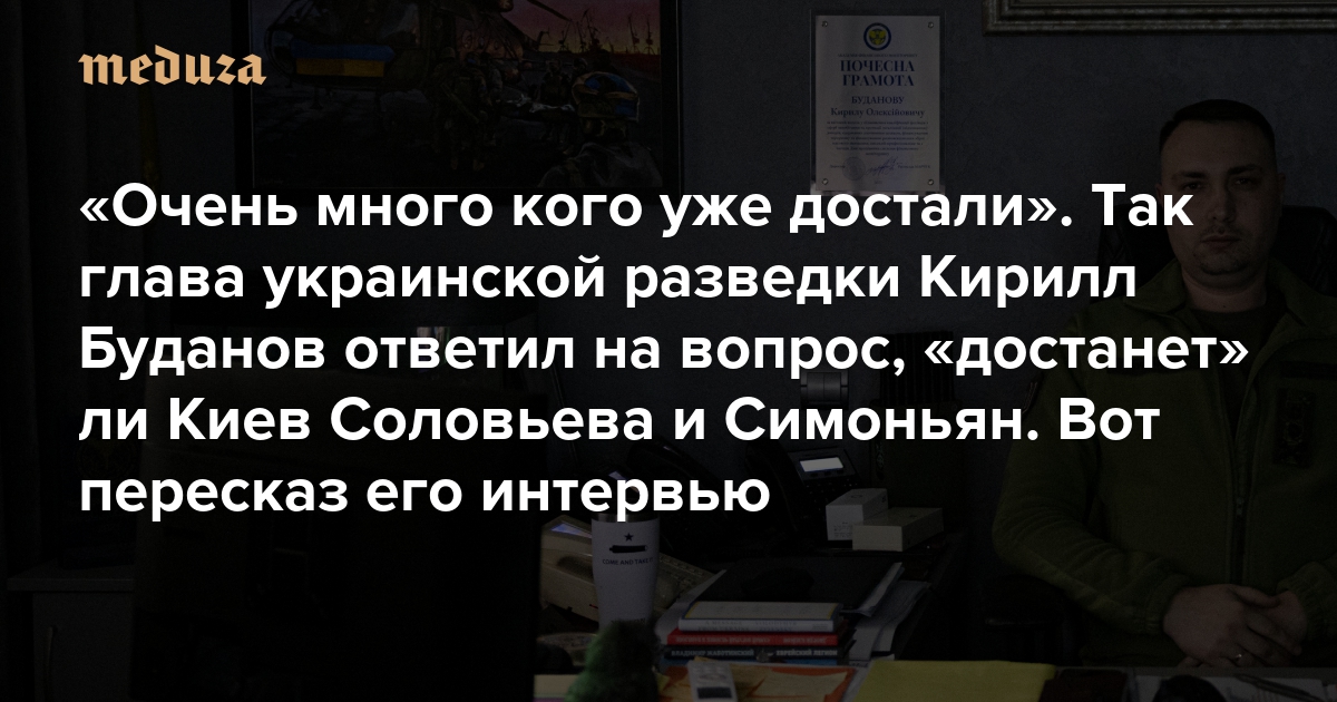 «Очень много кого уже достали». Так глава украинской разведки Кирилл Буданов ответил на вопрос, «достанет» ли Киев Соловьева и Симоньян Вот пересказ его интервью