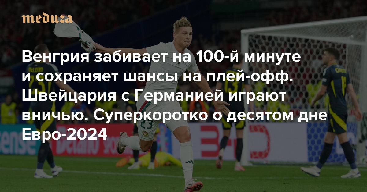 Венгрия забивает на 100-й минуте и сохраняет шансы на плей-офф. Швейцария с Германией играют вничью Евро-2024. Суперкоротко о десятом дне турнира