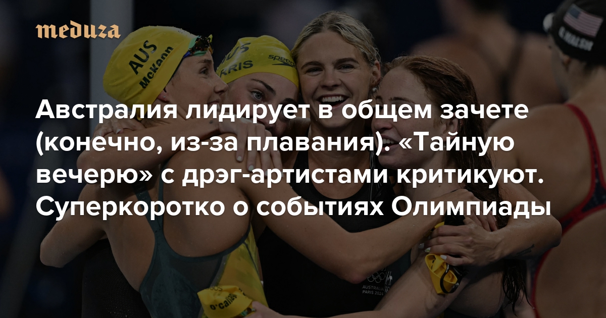 Австралия лидирует в общем зачете (конечно, из-за плавания). «Тайную вечерю» с дрэг-артистами критикуют Париж-2024. Суперкоротко о том, что происходит на Олимпиаде
