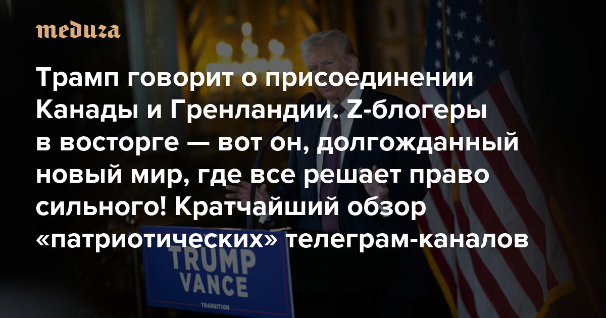 Трамп говорит о присоединении Канады и Гренландии. Z-блогеры в восторге — вот он, долгожданный новый мир, где все решает право сильного! Кратчайший обзор «патриотических» телеграм-каналов