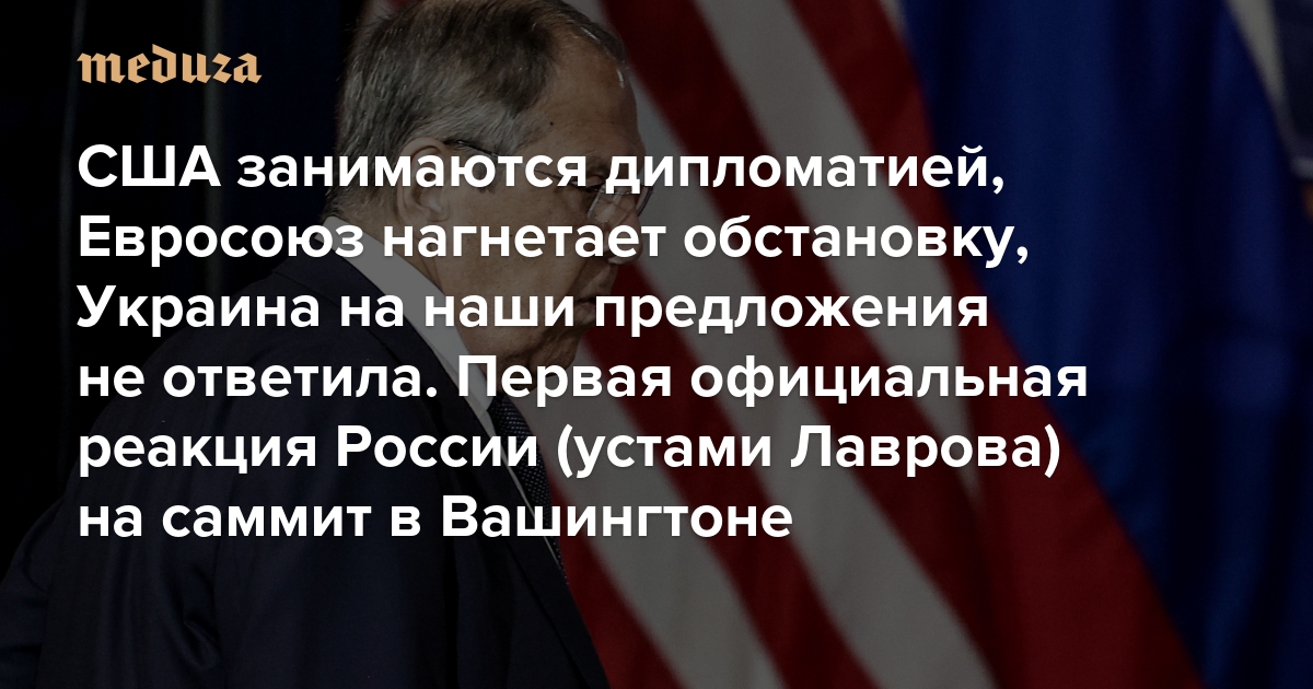США занимаются дипломатией, Евросоюз нагнетает обстановку, Украина на наши предложения не ответила Первая официальная реакция России (устами Лаврова) на саммит в Вашингтоне. Максимально коротко