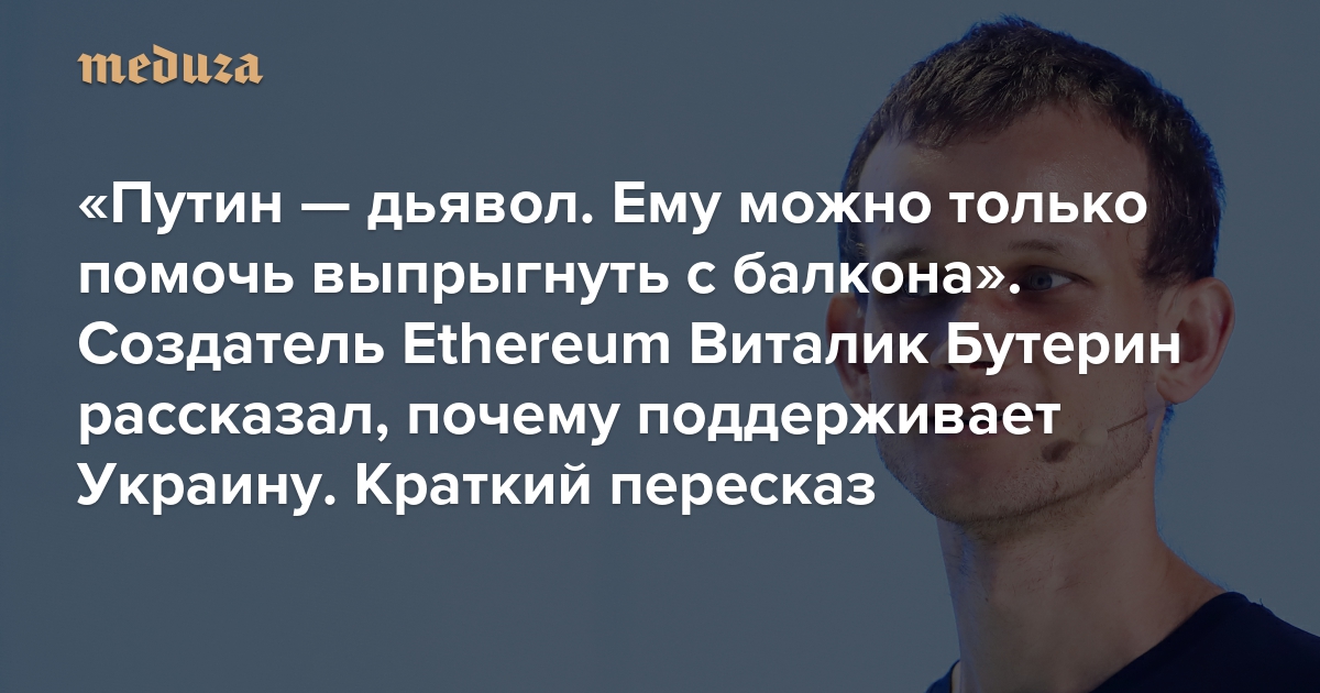 «Путин — дьявол. Ему можно только помочь выпрыгнуть с балкона» Создатель Ethereum Виталик Бутерин рассказал, почему поддерживает Украину. Краткий пересказ