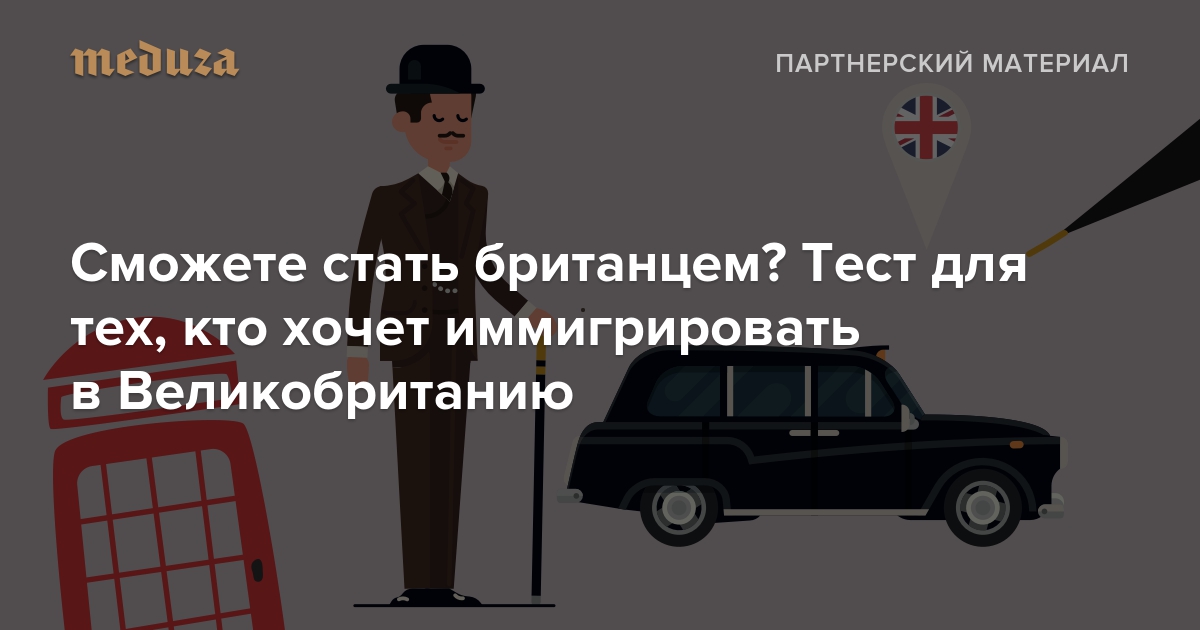 В Великобритании живет более ста тысяч русскоговорящих граждан и выходцев с постсоветсткого пространства. Иммигрировать непросто, но британское законодательство понятное и последовательное, так что шанс есть. Вместе с юридической компанией Law Firm Limited проверяем ваше знание иммиграционных тонкостей.