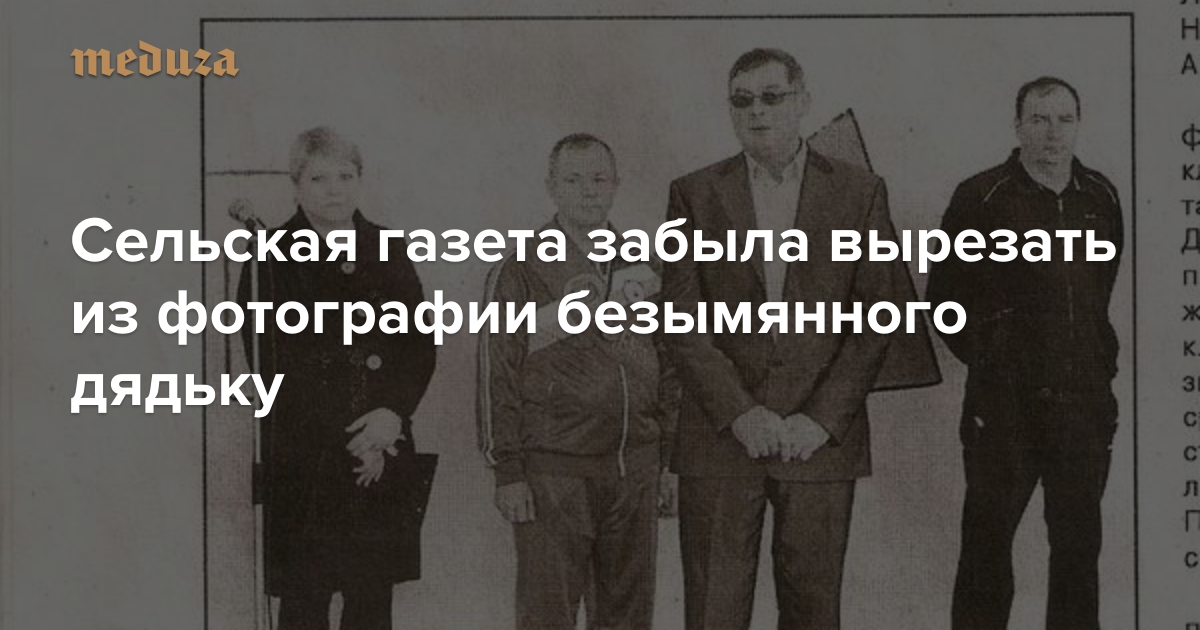 В публикациях не уточняется, какая газета разместила такую подпись. Однако «Медузе» удалось найти пост во «ВКонтакте» (на данный момент недоступен; сохранилась его копия в «Яндекс.Блогах»), в котором приводится снимок этой страницы «Сельского труженика». Приведенная в газете статья (за исключением фотографии с безымянным дядькой) доступна и на сайте издания.