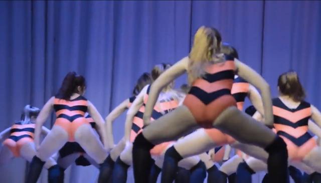 Пользователи в соцсетях обратили внимание на школьный концерт, в котором группа молодых девушек в костюмах пчел исполняет тверк — танец, в котором весь акцент делается на движениях бедер вверх-вниз. Основная часть танца исполняется под современную музыку, но в начале выступления звучит мелодия из мультика про Винни-Пуха (в это время на сцене находится «медведь»).