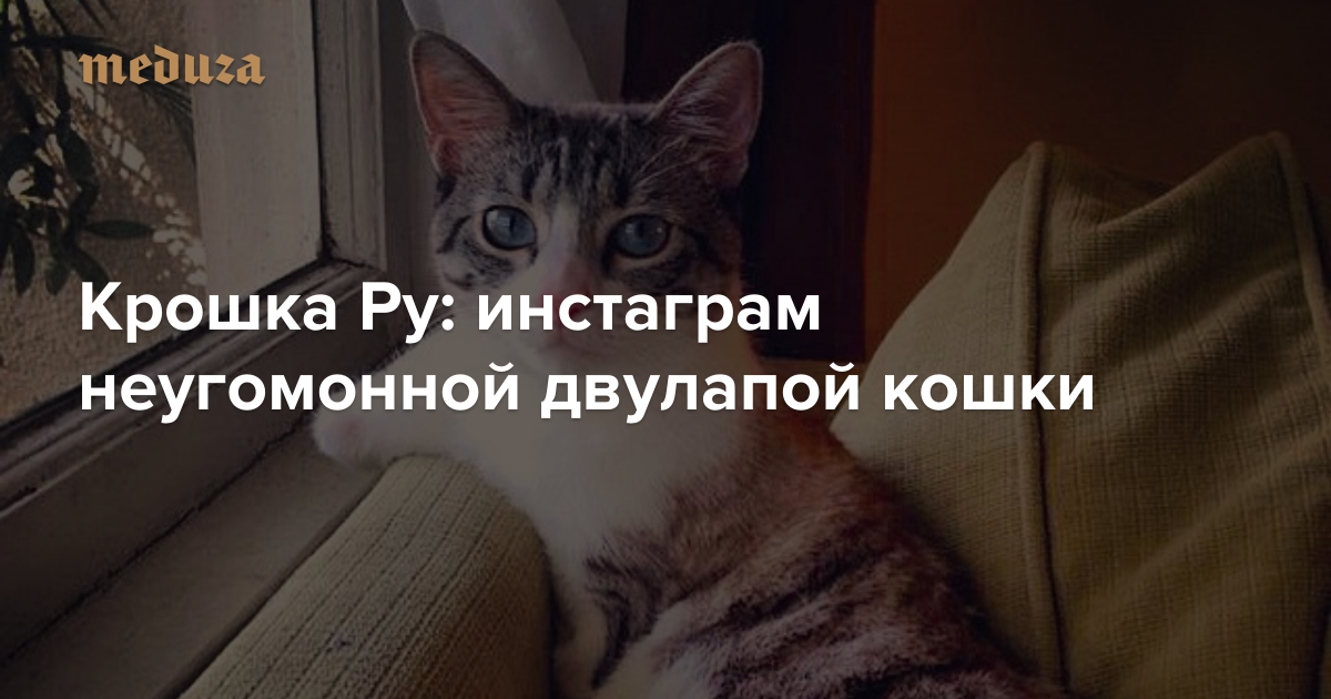 Многие СМИ обратили внимание на инстаграм кошки по имени Ру (Roux), которая родилась без передних лап. Когда животному было шесть месяцев, его оставили в приюте. К счастью для кошки ее увидела ветеринарный врач Джеки Аки и влюбилась с первого взгляда. Теперь кошка живет, окруженная любовью, дружит с кроликом и, кажется, полностью всем довольна.
