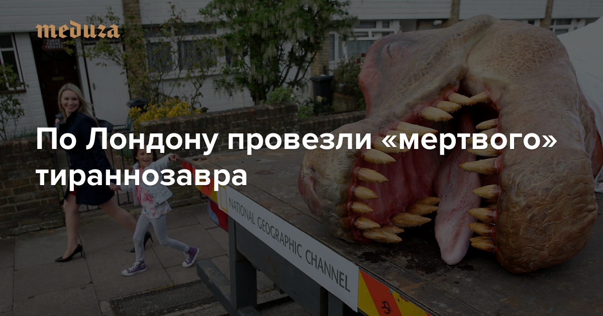 Тираннозавра катали по Лондону в качестве рекламы программы «T-Rex autopsy» («Вскрытие тираннозавра»), которую канал National Geographic покажет 7 июня.