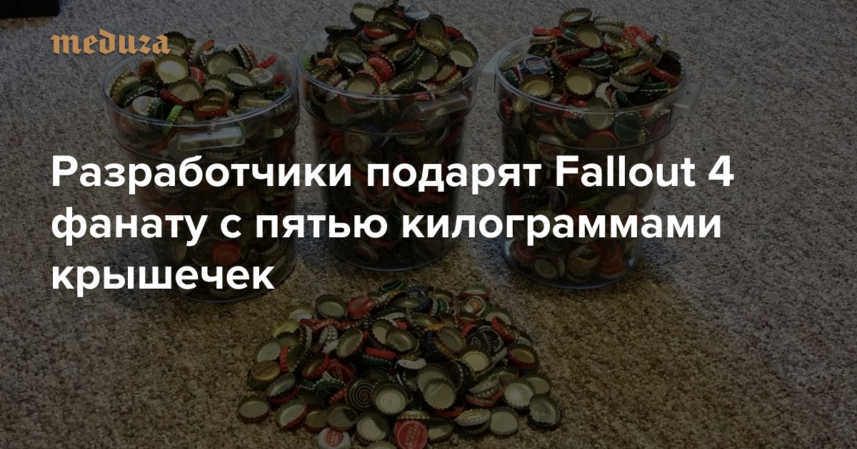 В середине июня поклонник серии игр Fallout отправил ее разработчикам, компании Bethesda, посылку с пятью килограммами крышечек от стеклянных бутылок. В сопроводительном письме он просил принять эти крышечки как оплату за новую игру серии Fallout 4 (или хотя бы вернуть крышечки обратно).