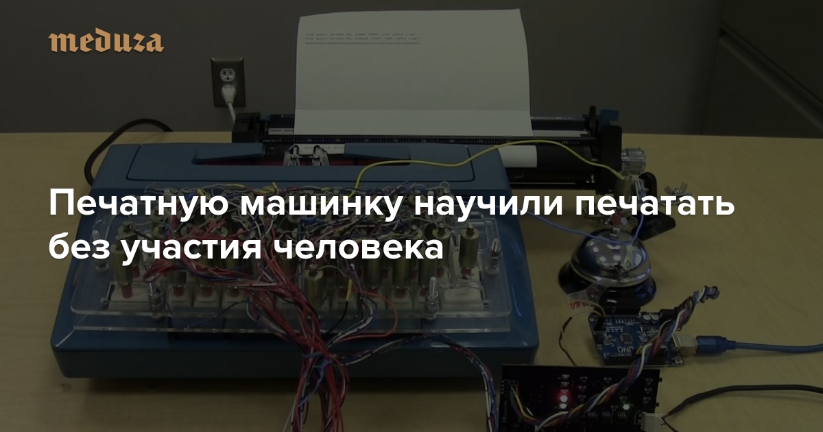Преподаватель университета Тафтса (США) Крис Грегг сконструировал надстройку над обычной печатной машинкой, которая позволяет печатать текст без вмешательства человека.