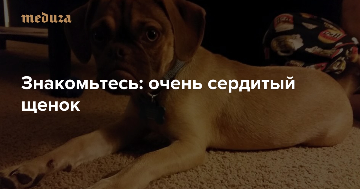 Это Эрл — пугль во втором поколении (пугли — это помесь мопса и бигля). У него неправильное строение челюсти, из-за чего он всегда выглядит очень сердитым. Даже суровее, чем знаменитая Грэмпи Кэт.