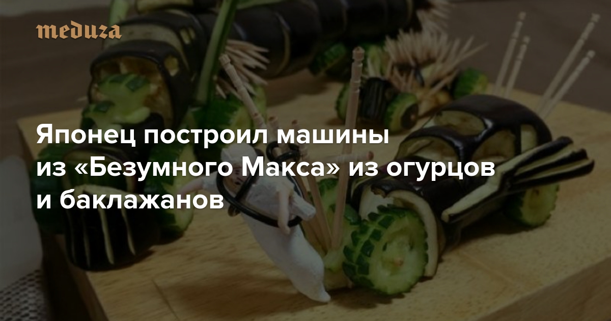Пользователь @sativa_high из Японии построил машины из фильма «Безумный Макс», используя огурцы, баклажаны и зубочистки.