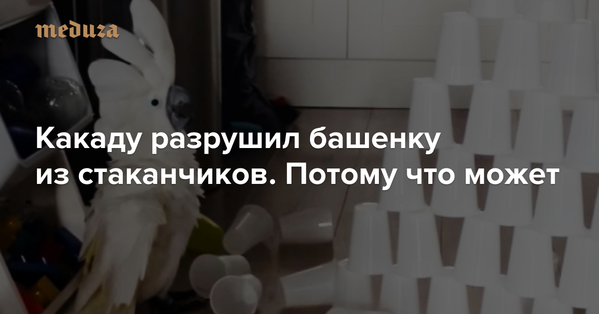Какаду разрушил башенку из стаканчиков. Потому что может
