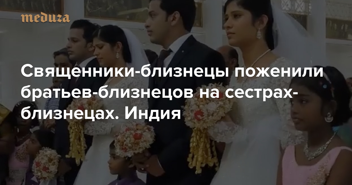В индийском округе Триссур прошла необычная свадьба: в ней все участники были близнецами. Братья-близнецы Дилрадж и Дилкер женились на сестрах-близнецах Риме и Рине.