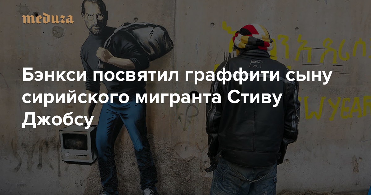 У себя на сайте Бэнкси подписал граффити строчкой «Сын мигранта из Сирии» — это отсылка к тому, что биологический отец Стива Джобса, Абдулфатта Джандали был сирийцем, переехавшим в США.