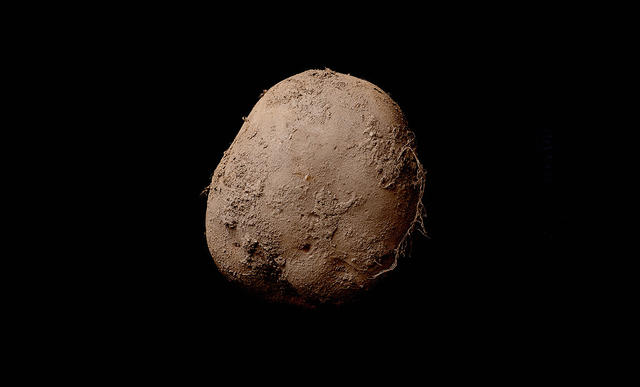 Фотография ирландской картошки на черном фоне выполнена в фирменном стиле Эбоша. Фотограф прославился портретами звезд — от Йоко Оно до Джонни Деппа — сделанными именно на черном фоне.