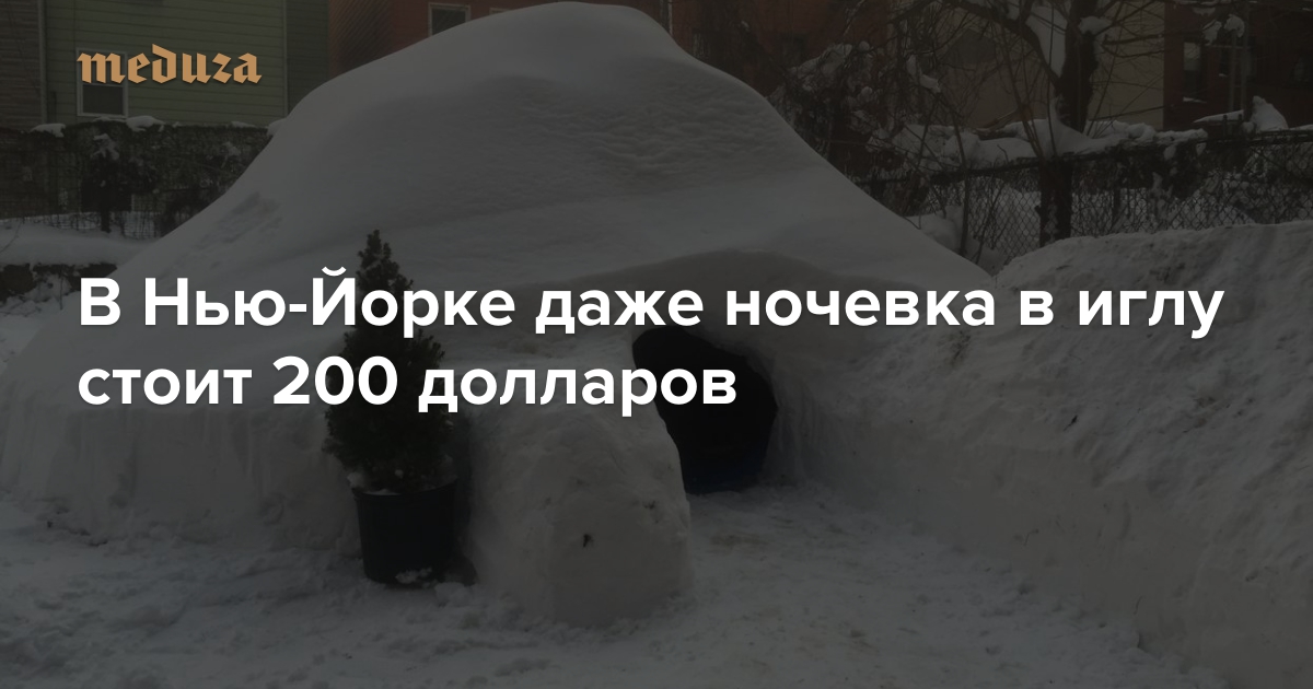 Арт-директор рекламной компании Патрик Хортон, живущий в Нью-Йорке, нашел плюсы в сильном снегопаде, обрушившемся на город — он построил иглу и выставил его на Airbnb. Ночь в домике на двоих Хортон оценил в 200 долларов.