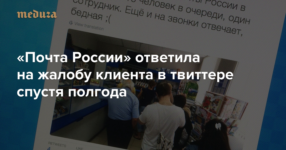 «Почта России» ответила на жалобу клиента в твиттере спустя полгода