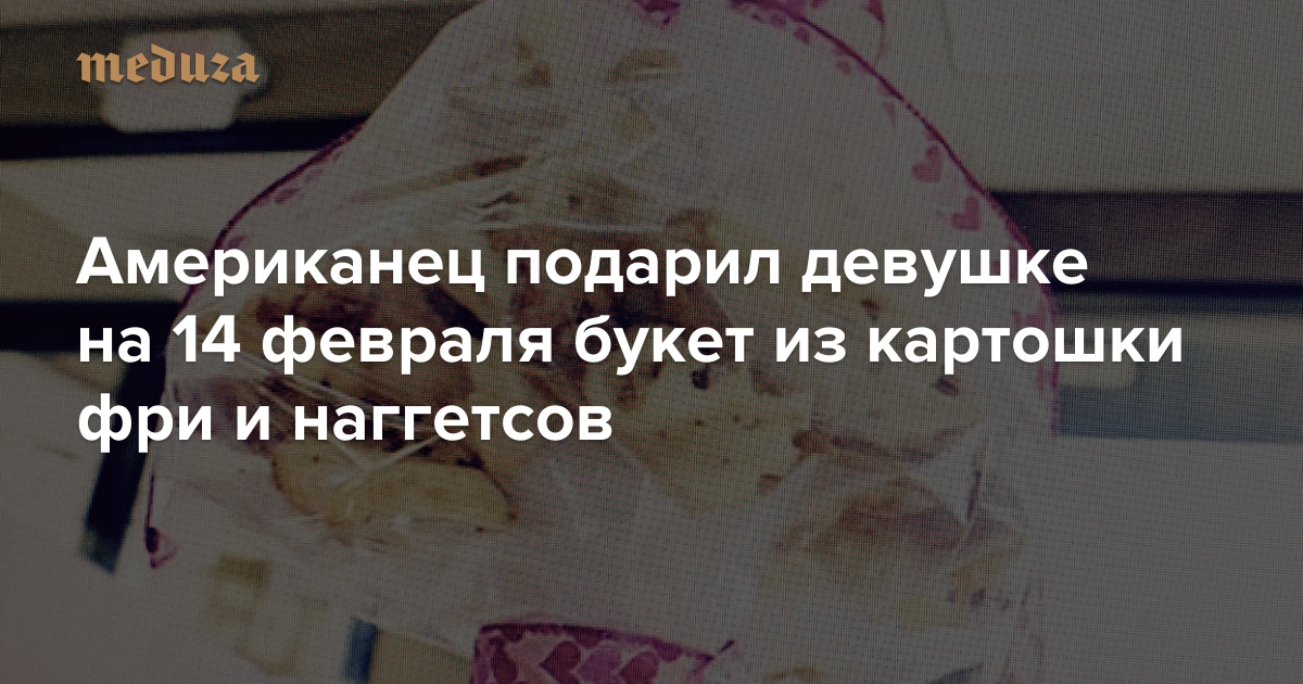 Музыкант Тьера Лефтвич получила необычный подарок на День святого Валентина: ее молодой человек Камрен Кеннеди подарил ей букет, сделанный из картошки фри и куриных наггетсов. Материалы для букета Кеннеди купил в любимом фастфуде девушки. Ему понадобилось 30 наггетсов и две большие порции картошки.