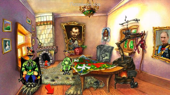 Читатель «Медузы» Николай Журавлев обнаружил в переиздании квеста «Петька и Василий Иванович спасают галактику» портрет Владимира Путина в образе императора. Он висит в штабе белых.