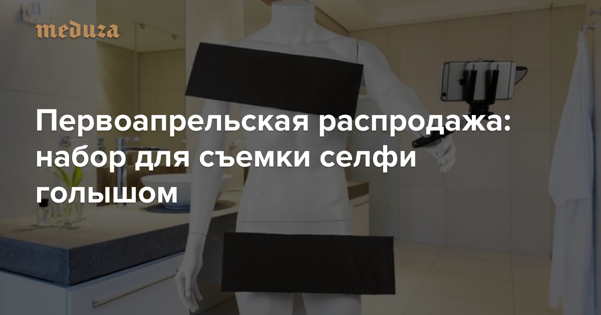 В набор входят палка для селфи, двусторонний скотч и две прямоугольные карточки, чтобы прикрывать гениталии и грудь.