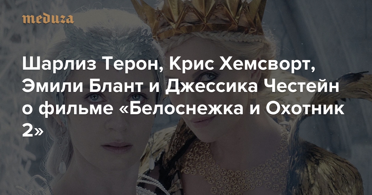 14 апреля в российских кинотеатрах начнут показывать фильм «Белоснежка и Охотник 2» — приквел и спин-офф «Белоснежки и Охотника». Картина повествует о происхождении Ледяной Королевы, которую сыграла Эмили Блант. «Медуза» представляет ролик, в котором актеры, исполнившие главные роли, — Шарлиз Терон, Крис Хемсворт, Эмили Блант и Джессика Честейн, — рассказывают о фильме и своих впечатлениях от него.
