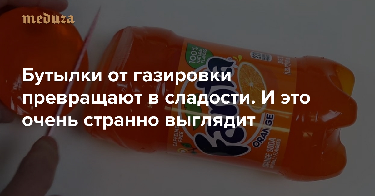 В последние месяцы в Сети появилось немало безумно популярных видео, на которых из бутылок с газировкой делают желе. Готовить такое довольно просто, а эффект получается невероятный. «Медуза» узнала рецепт необычного желе, а также посмотрела, что еще можно сделать в форме бутылки из-под газировки.