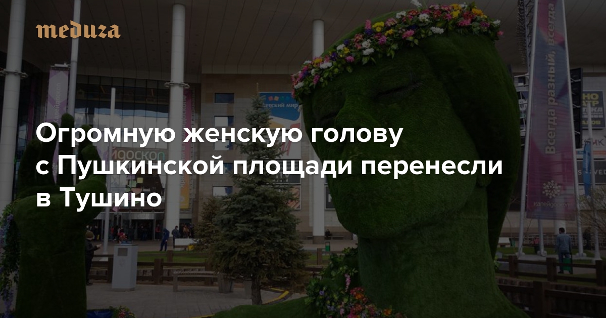 Огромную женскую голову с Пушкинской площади перенесли в Тушино